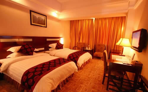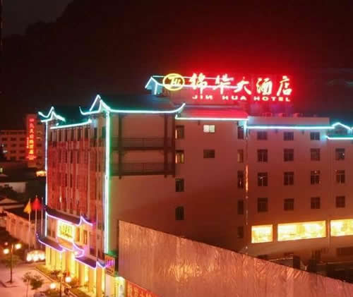 武陵源錦華大酒店是一家按國家四星級(jí)標(biāo)準(zhǔn)、2009年5月新修建成的豪華旅游度假酒店,地理位置優(yōu)越,位于武陵源汽車站旁.酒店集觀光旅游、度假、商務(wù)會(huì)議、品嘗土家美食等多功能為一體,酒店建筑融合張家界地區(qū)的民族風(fēng)情和建筑文化,是張家界地區(qū)最有土家風(fēng)情的星級(jí)酒店之一。 武陵源錦華大酒店安裝了數(shù)控中央空調(diào)系統(tǒng)、空氣源熱水系統(tǒng)。24小時(shí)供應(yīng)冷熱水。 武陵源錦華大酒店擁有客房100間,其中套房3間、標(biāo)準(zhǔn)間96間、單人間1間,客房?jī)?nèi)配有液晶電視、閉路電視和寬帶接口;餐要包廂8個(gè)、豪華包相一個(gè)、極具當(dāng)?shù)靥厣摹盎鹂游荨卑鼛?個(gè)、中餐宴會(huì)廳可同時(shí)容納300人就餐。酒店還配備一個(gè)高標(biāo)準(zhǔn)多功能的現(xiàn)代化會(huì)議室,安裝有電視電話會(huì)議系統(tǒng),可以舉行各種類型的中小型會(huì)議。