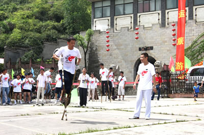 張家界高花燈亦稱高皇燈,是流行于永定沅古坪一帶富有民族特色的舞蹈。表演時,12人至24人不等。配有鑼、鈸、嗩吶、鼓等樂器。每人手中拿一盞紙扎燈籠,內(nèi)點蠟燭兩根,頂扎一木偶像,用五色紙剪成戲文故事如“八仙” 、“瓦崗寨”,“梁山英雄 ”之類。高花燈表演有一套程式,要求東起西落,進一個“半邊月”,出一個“月團圓”,舞個“太極圖”。亦可進民房表演,叫“愿燈”,多為祝福、還愿或為某家喜事湊趣。打吆喝、打口哨則只能到戶外表演,叫“眾燈”,是讓大家看的。其形式又分民燈、戰(zhàn)燈。前者表演 古代先民的遷徙、繁衍、勞動、生活;后者表演打仗破陣。隊形變化有“織籬笆”、滾柱頭”、“十八斗”、“螺螄轉(zhuǎn)頂”、“八卦陣”、“過天星”、“一字長蛇”等二十余種。如破“象棋盤陣”,主人插三十二根香,擺成棋盤陣,表演時,主人舉紅傘,玩燈者舉黑傘,從河道進,將眾“子”一一吃掉(即踩香),這是斗智的競賽。只見燈火如流星般穿插舞蹈 ,旁邊配以龍燈互舞(配龍玩燈,是高花燈的主要特點之一),那激起的鑼鼓聲、吆喝聲、口哨聲,掀起有節(jié)奏的聲浪,熱烈而歡快。 張家界高花燈發(fā)祥于張家界市永定區(qū)沅古坪鎮(zhèn)等地區(qū),與沅古坪地區(qū)接壤的沅陵、桃源、慈利等周邊區(qū)縣也有少量玩高花燈的習(xí)慣。 高花燈的燈代表著光明幸福,12個燈表示12個月,月月平安無事。每年春節(jié),每個村寨都要操練一班高花燈,辭舊迎新。制作時,藝人用竹篾和紙扎糊成12或24個燈籠,在燈籠下加上一個長柄燈托,并在燈籠上扎上五顏六色的“故事”,如“八仙”、“耿氏送子”等。夜晚,在燈籠里點上木油臘燭,一人舉一個燈籠,邊舞邊組成多種隊形。一眼望去,流光閃爍,尤如銀河戲舞。 張家界高花燈不但為本鄉(xiāng)本土的觀眾所喜愛,而且受到海內(nèi)外朋友及國際友人的高度贊賞。因為它是中國古老的民間舞蹈代表,它以自成體系的記譜方法,延繼著中國舞蹈的血脈,以其悠久的舞蹈歷史和多元文化特征,被舞蹈界認為是“中國舞蹈歷史上的活化石”,極具學(xué)術(shù)研究價值和很高的審美價值。已列入全省第一批非物質(zhì)文化遺產(chǎn)保護名錄。 高花燈相傳起源于東漢章帝初年,時“ 中蠻”覃兒健在澧水中下游舉義反漢,與漢軍“戰(zhàn)于洪下”(相傳為今大庸紅土坪,待考),洪下“蠻人”用火 把跳舞為義軍吶喊助戰(zhàn),終因漢軍勢眾,覃兒健與義軍全部戰(zhàn)死(至今留下懸鼓坪、御甲埡、扎營山、烽火臺等古戰(zhàn)場遺跡)。以后,當?shù)匦U人每年都必在過 后年(從正月初一至元宵節(jié))打火把集會跳舞, 栽“ 陽樁”(土話栽跟頭),表示對“洪下之戰(zhàn)”的紀念 。久而久之,火把進化成燈籠和扎人物事故,表演也 有一定規(guī)矩。至今,這種舞蹈藝術(shù)還保留著古老、原始、粗獷、豪放、悲壯的特色。 |