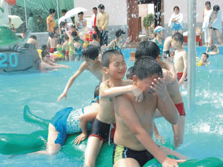 兒童游樂園 卡通噴泉、急速滑梯……這里的童話世界讓您的孩子恍若天使般幸福、快樂!銀鈴般的笑聲,充滿童稚音的歌聲,響徹云霄。美妙的孩童時光從這里開始,五彩斑斕的人生從這里起步。水溫36-38度,專為兒童設計,設有水上滑道和花樣繁多的兒童小品:蘑菇噴淋、水槍、浮漂等,讓您的孩子盡情釋放活潑快樂。