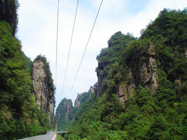 百丈峽圖片 百丈峽是武陵源風(fēng)景名勝區(qū)通往張家界市的公路貫通整個峽谷,因有堵高近百丈的石壁,直插云霄,不敢仰視,故而得名。據(jù)《慈利縣志》載,索溪峪右得百丈峽,峽長三十公里……又相傳向王天子起義軍與官兵在此先后博殺一百仗,依此又名百仗峽。明代九永兵備胡桂芳,一生好游歷山川,來到百丈峽后題寫了一首七言詩:“峽高百丈洞云深,要識桃源此處尋;戎旅徐行風(fēng)雪緊,誰將興盡類山蔭!笨逃趰{內(nèi)道旁石壁上。