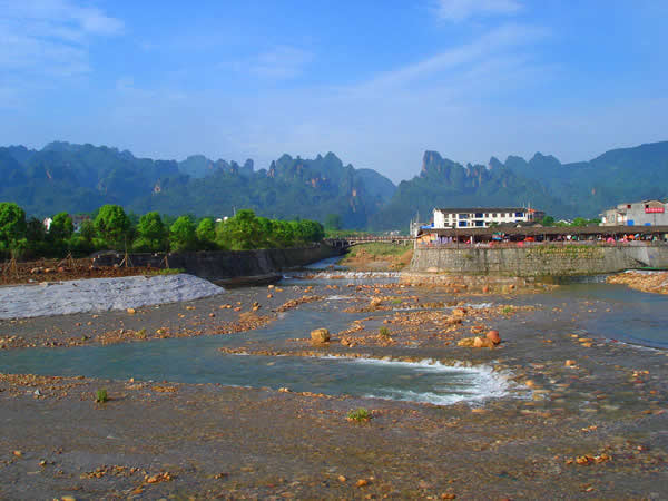 索溪峪的水 索溪峪的景觀,以山水為依托。不僅山奇、水秀,而且橋險(xiǎn)、洞幽。有十里畫廊、西海峰林、百丈峽、寶峰湖、黃龍洞、一線天等游覽點(diǎn)300多個(gè)。