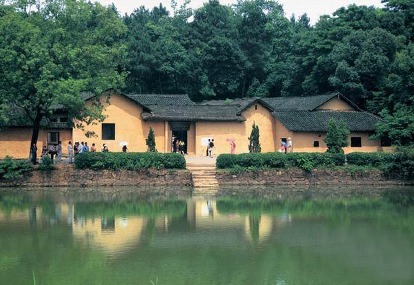 【毛澤東故居】:位于韶山村土地沖上屋場,屋前荷花塘和南岸塘相毗鄰,放眼青山,背依翠竹映襯得生氣盎然。
