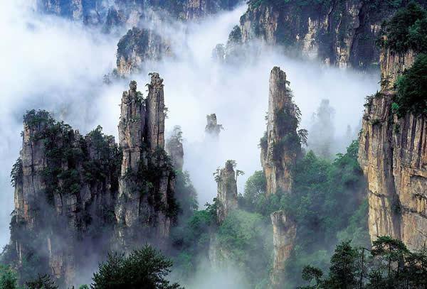 下 午:可選擇步行(步行下山一般時間為2小時左右)或者乘坐天子山索道(索道票72元/人自行購買)下山,游覽巧奪天工的--【十里畫廊】,可以選擇步行或者乘坐觀光小火車游覽十里畫廊(觀光小火車票單程38元/人自行購買),沿途欣賞天臺三姐妹峰、向王觀書、黃昏戀、壽星迎賓、采藥老人、錦鼠觀天、猛虎嘯天等景點;